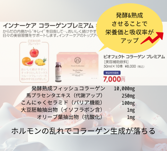 私が自信を持っておすすめするのは、吸収率の高い「醗酵熟成コラーゲン」10,000mgを配合したコラーゲンドリンクです。